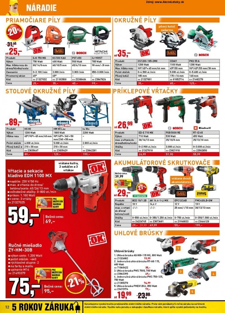 Kromě akčního letáku Baumax si zde můžete prohlédnout i letáky dalších prodejců zboží pro dům, byt a zahradu: Bauhaus, Dom farieb, Hornbach, Merkury Market, Obi, Proma