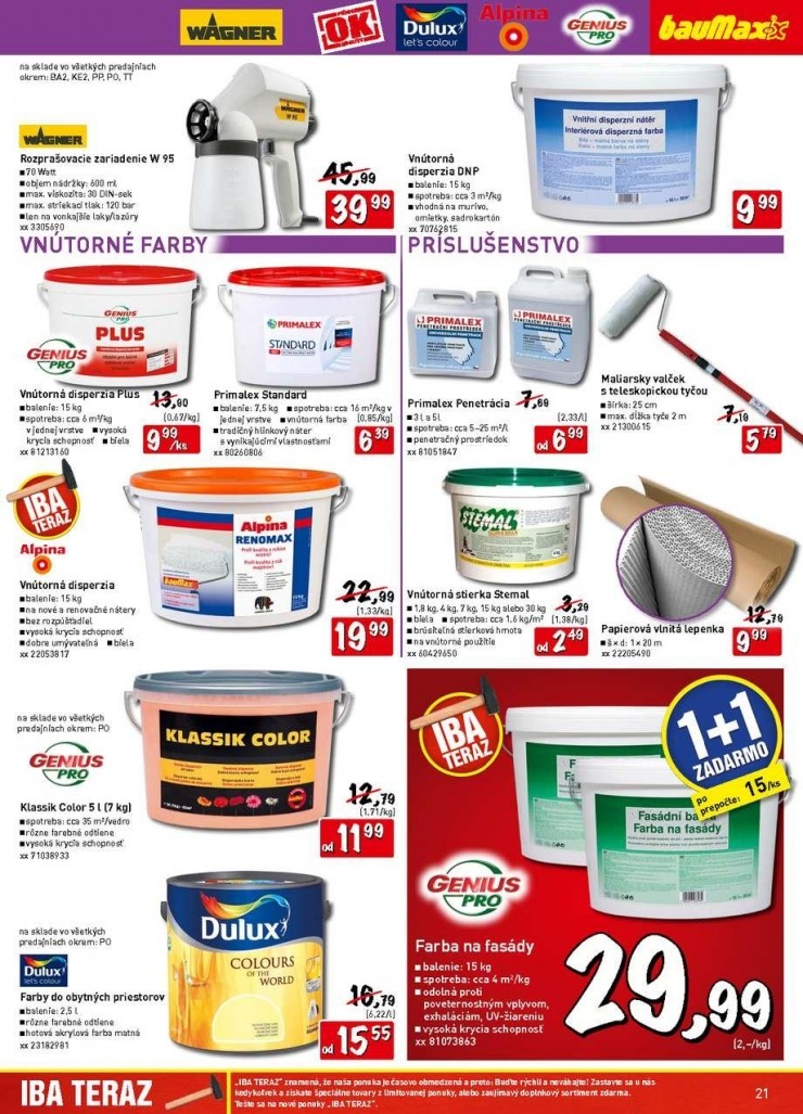 Kromě akčního letáku Baumax si zde můžete prohlédnout i letáky dalších prodejců zboží pro dům, byt a zahradu: Bauhaus, Dom farieb, Hornbach, Merkury Market, Obi, Proma