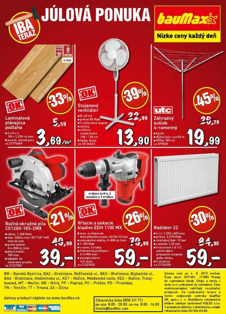Kromě akčního letáku Baumax si zde můžete prohlédnout i letáky dalších prodejců zboží pro dům, byt a zahradu: Bauhaus, Dom farieb, Hornbach, Merkury Market, Obi, Proma