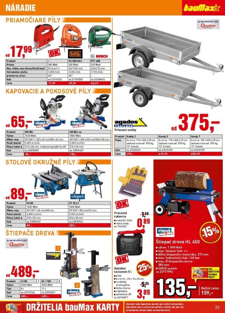 Kromě akčního letáku Baumax si zde můžete prohlédnout i letáky dalších prodejců zboží pro dům, byt a zahradu: Bauhaus, Dom farieb, Hornbach, Merkury Market, Obi, Proma