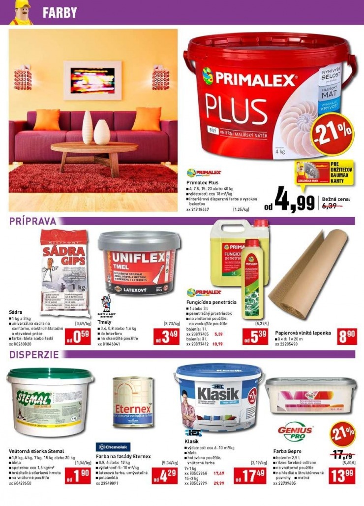 Kromě akčního letáku Baumax si zde můžete prohlédnout i letáky dalších prodejců zboží pro dům, byt a zahradu: Bauhaus, Dom farieb, Hornbach, Merkury Market, Obi, Proma