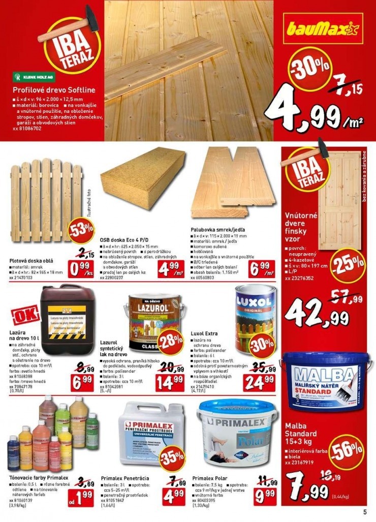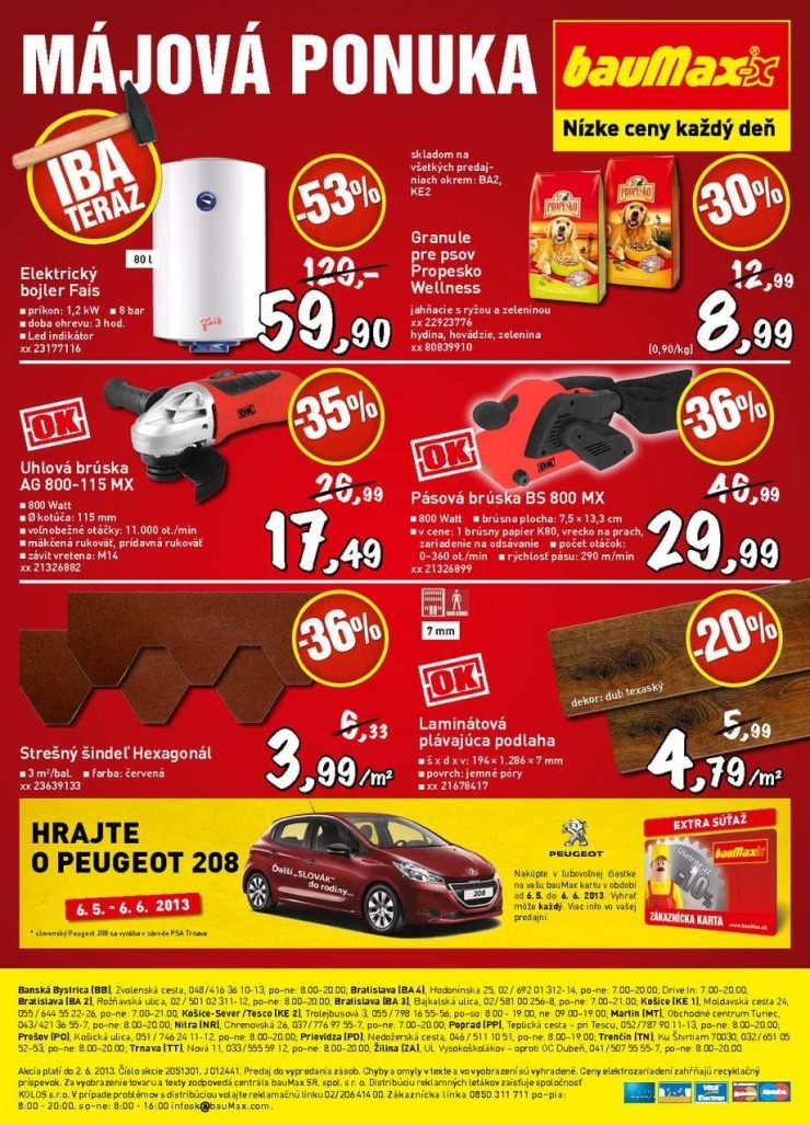 Kromě akčního letáku Baumax si zde můžete prohlédnout i letáky dalších prodejců zboží pro dům, byt a zahradu: Bauhaus, Dom farieb, Hornbach, Merkury Market, Obi, Proma