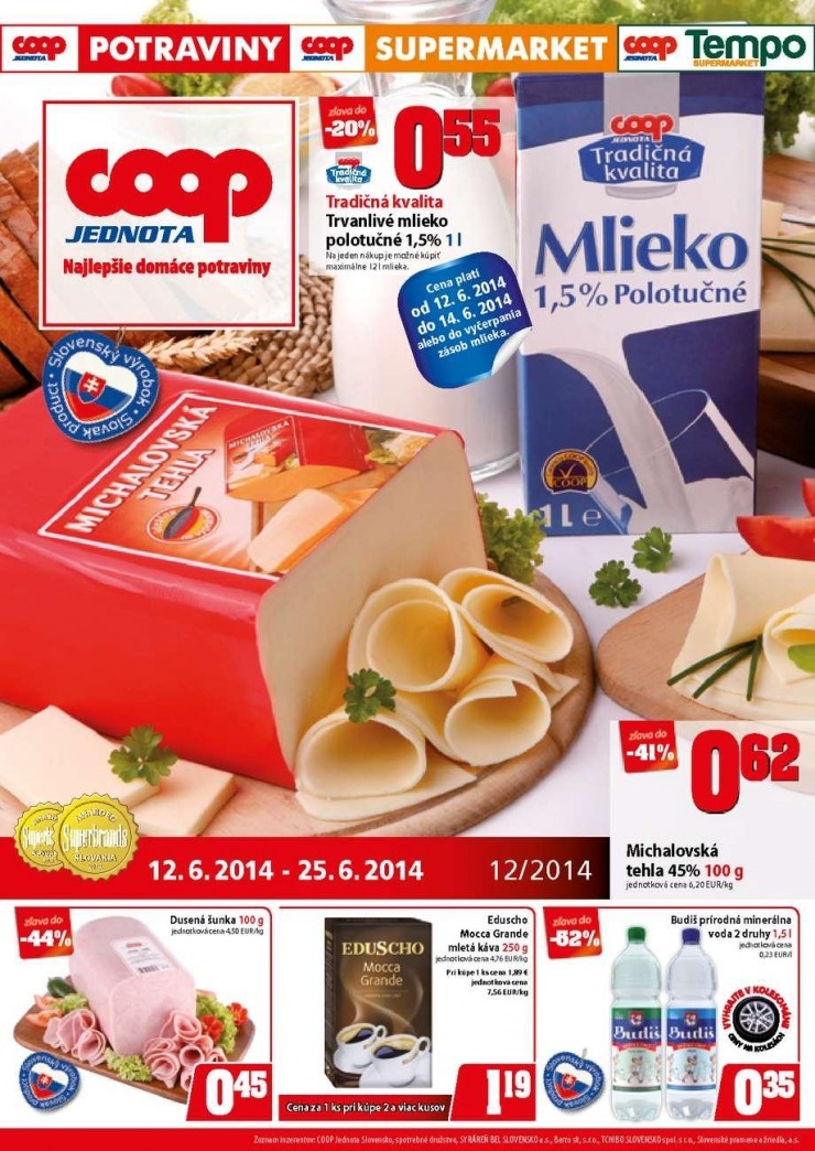 Prohlížíte si akční leták akciový leták COOP Jednota s platností 12. 6. - 25. 6. 2014.