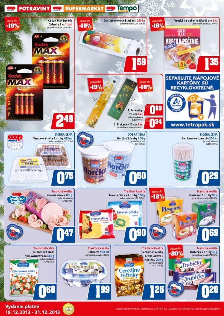 Prohlížíte si akční leták akčná ponuka COOP s platností 19. 12. - 31. 12. 2013.
