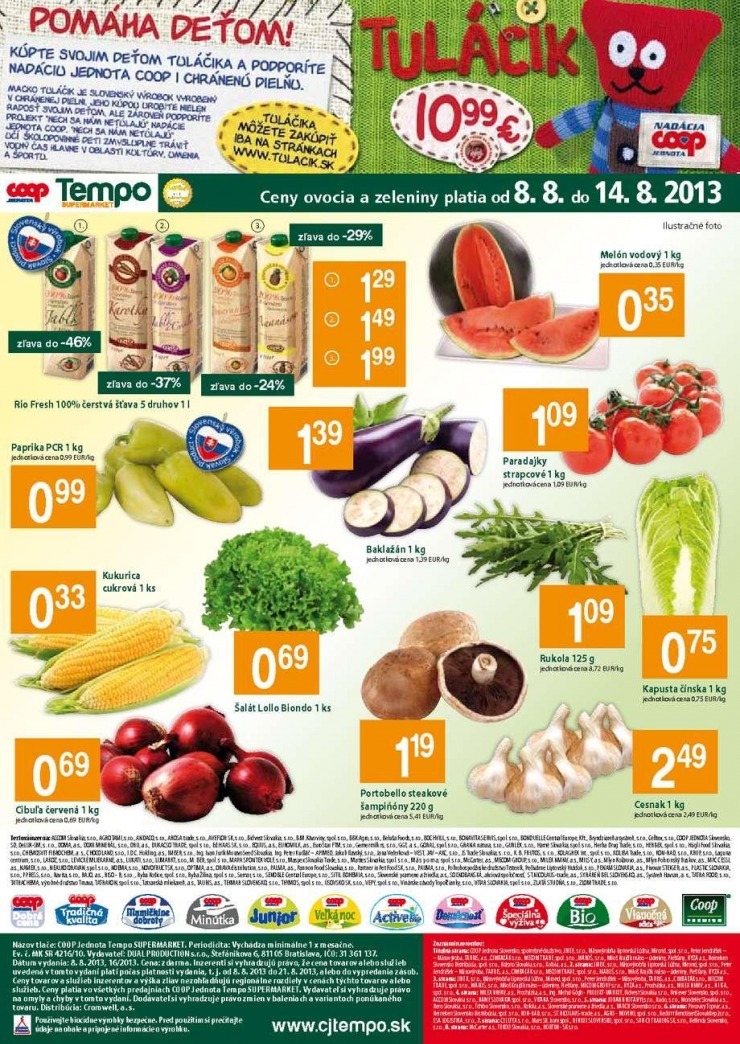 Prohlížíte si akční leták akční leták COOP - Tempo s platností 8. 8. - 21. 8. 2013.