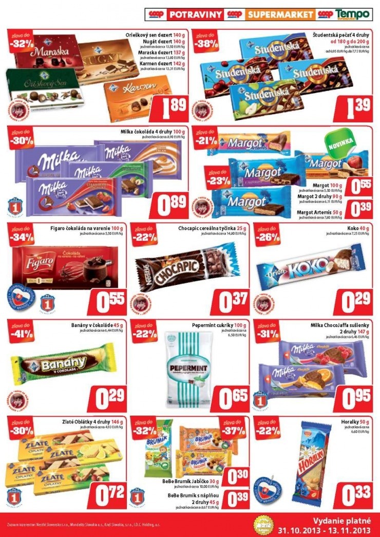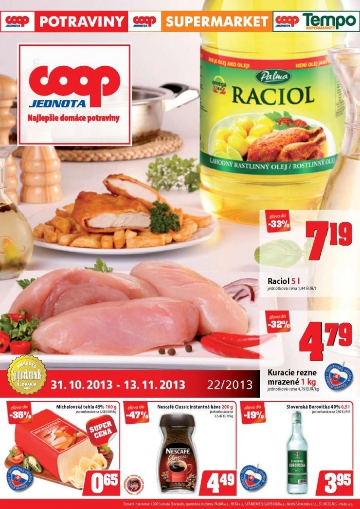 Prohlížíte si akční leták akčný leták COOP Jednota s platností 31. 10. - 13. 11. 2013.