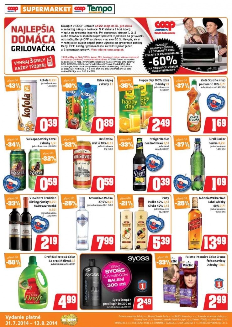 Prohlížíte si akční leták COOP akčný leták s platností 31. 7. - 13. 8. 2014.