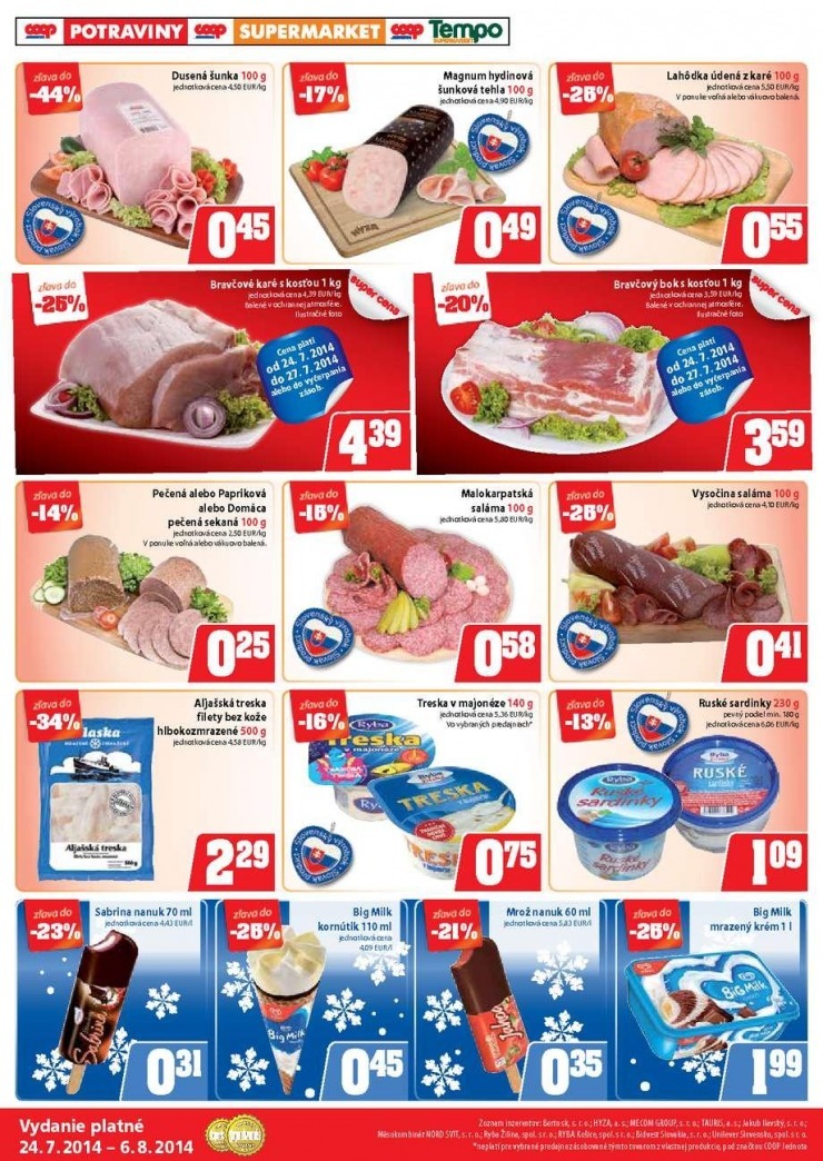 Prohlížíte si akční leták COOP Jednota aktuálna ponuka s platností 24. 7. - 6. 8. 2014.