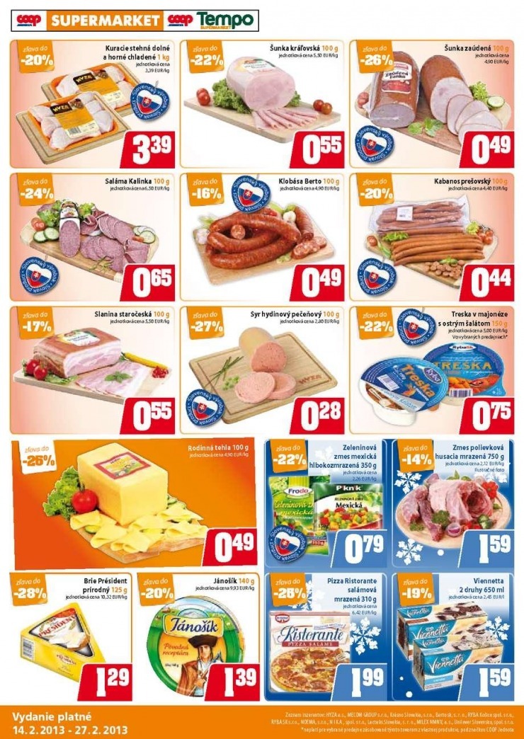 Leták COOP Jednota aktuálny leták, 14. 2. - 27. 2. 2013