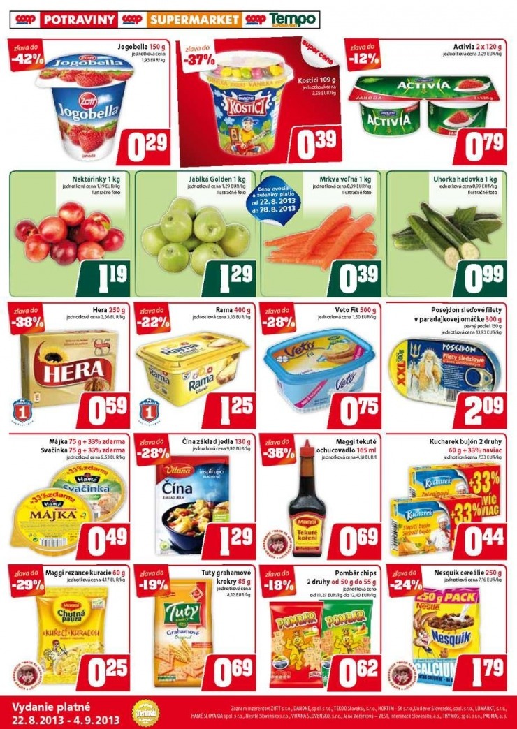 Leták COOP Jednota extra leták, 22. 8. - 4. 9. 2013
