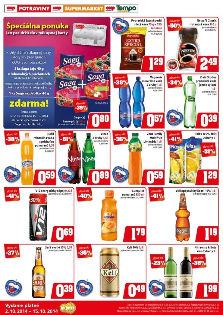 Prohlížíte si akční leták extra leták COOP s platností 2. 10. - 15. 10. 2014.