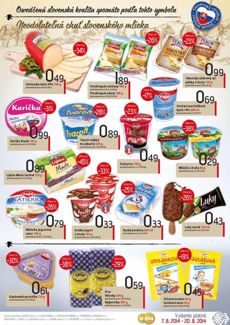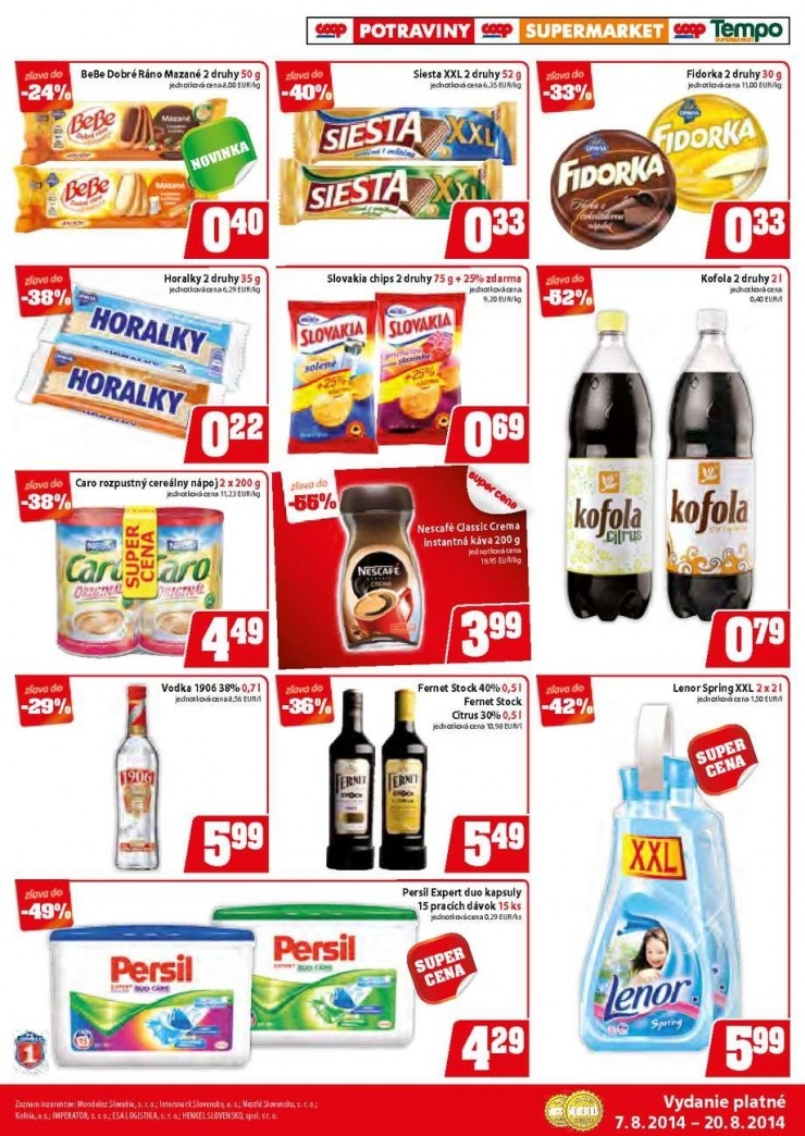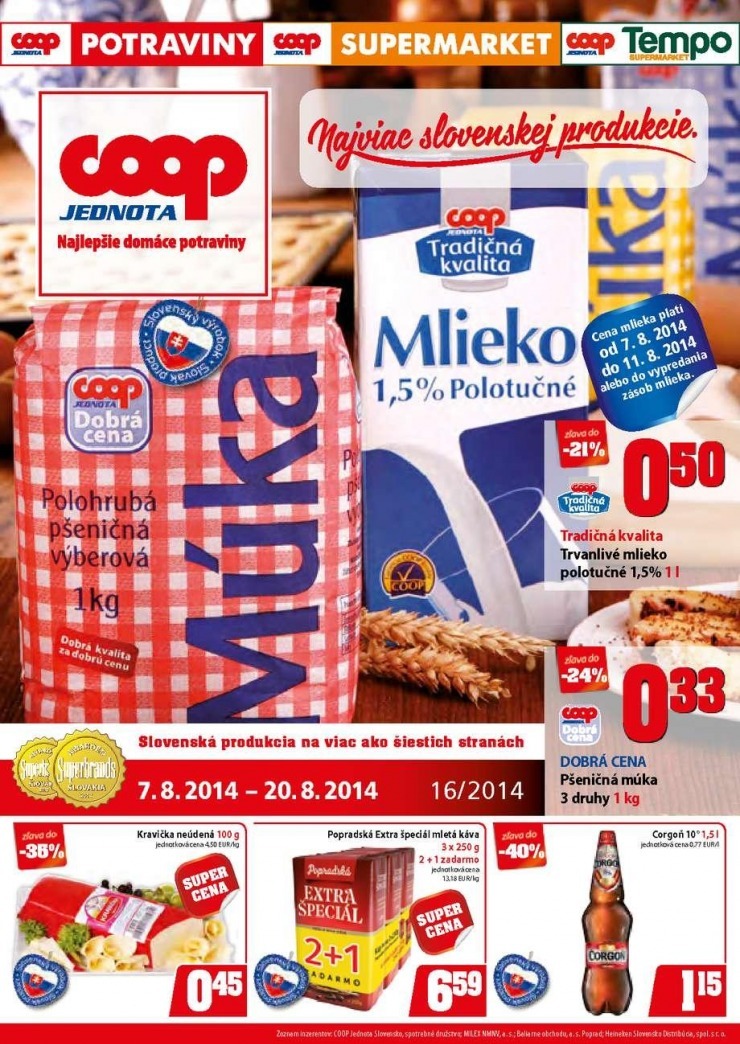 Leták extra leták COOP Jednota, 7. 8. - 20. 8. 2014