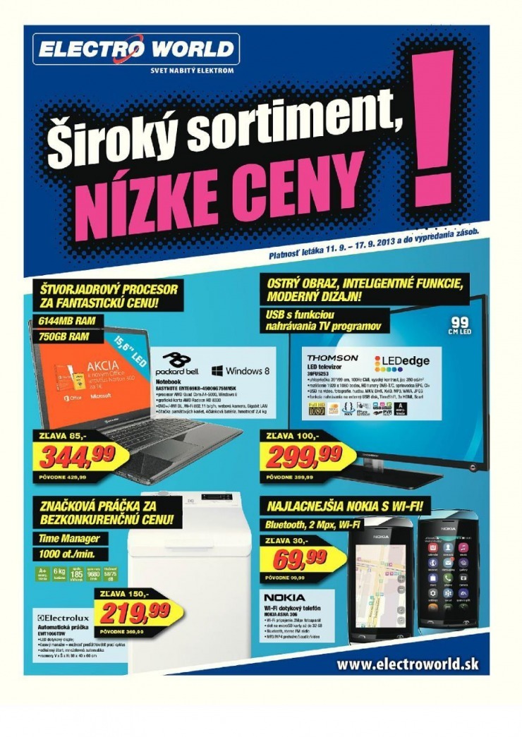 Prohlížíte si akční leták Electro World akciový leták s platností 11. 9. - 17. 9. 2013.