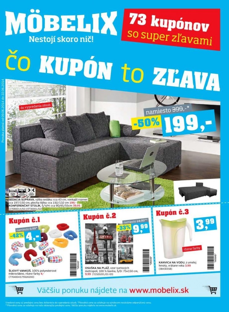 Prohlížíte si akční leták akciový leták Möbelix s platností 9. 6. - 23. 6. 2014.