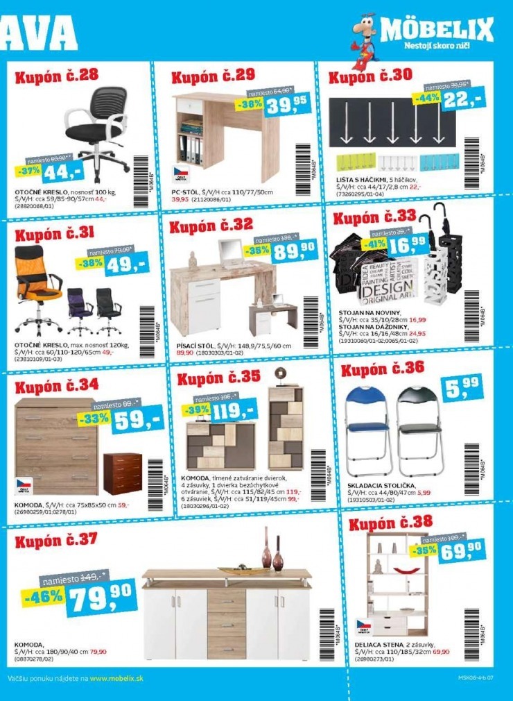 Kromě akčního letáku Mobelix si zde můžete prohlédnout i letáky dalších prodejen nábytku: Asko nábytok, Black Red White, Decodom, Europa Mobel, Ikea, Jamall nábytek, Jena nábytek, Jysk, Kika, Komandor, Sconto nábytok