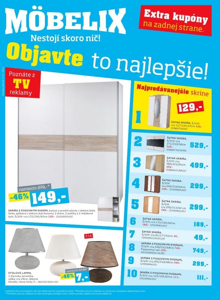 Leták Möbelix mimoriadný leták, 4. 11. - 17. 11. 2013