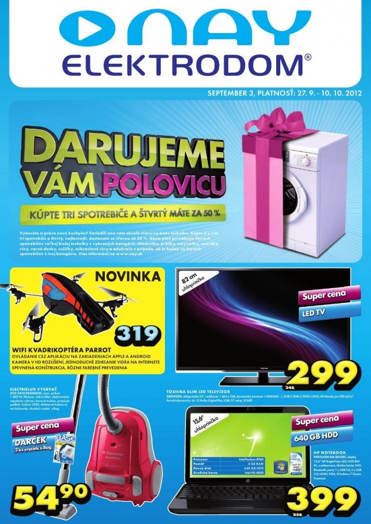 Prohlížíte si akční leták NAY Elektrodom mimoriadná ponuka s platností 27. 9. - 10. 10. 2012.
