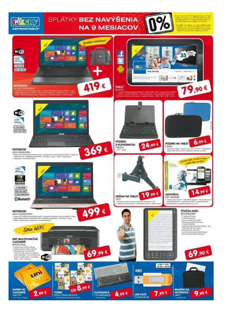 Kromě akčního letáku Okay si zde můžete prohlédnout i letáky dalších prodejců elektra: Alza.sk, Datart, Electroworld, Euronics, Expert Elektro, NAY Elektrodom, playklub, ProELEKTRO, SHARK Computers