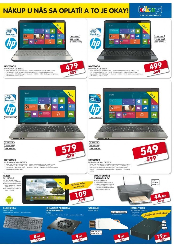 Kromě akčního letáku Okay si zde můžete prohlédnout i letáky dalších prodejců elektra: Alza.sk, Datart, Electroworld, Euronics, Expert Elektro, NAY Elektrodom, playklub, ProELEKTRO, SHARK Computers
