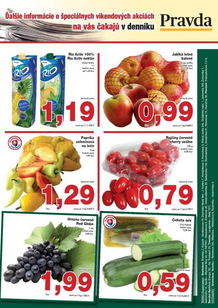 Kromě akčního letáku Terno si zde můžete prohlédnout i letáky dalších supermarketů: Albert, BALA, Billa, COOP, Lidl